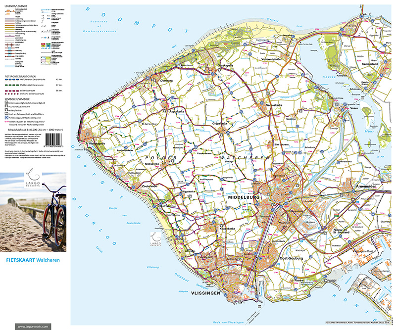 De gebruikte basiskaart is een topografische kaart schaal 1:50.000, die verschaald is naar 1:40.000. De topografische kaart is in kleurbeeld aangepast aan de fietsgast van Largo Villas. De fietskaart is voorzien van drie fietsroutes over Walcheren door Agtekerke, Domburg, Westkapelle, Dishoek, Vlissingen en Zoutelande. Deze fietsroutes voeren de Largo Villas gast langs mooie plekjes van Waclcheren..