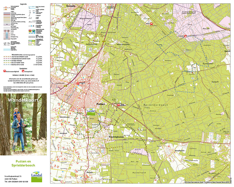 Gasten van Landal Heihaas beleven de Veluwe ook met de Landal wandelkaart "Putten en Sprielderbosch". De wandelkaart van Landal Heihaas is een compacte en
